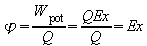 Im elektrischen Feld erhält man analog eine von der Ladung Q eines Probekörpers unabhängige Größe, die nur das Feld beschreibt: Dazu wird der Quotient von potentieller Energie und Ladung der Probeladung, die sich im Feld befindet, gebildet: