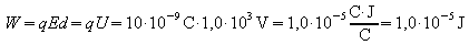c) Um die Probeladung von der negativen zur positiven Platte zu transportieren, muss folgende Verschiebungsarbeit verrichtet werden: