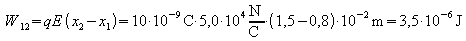 e) Die Probeladung befindet sich an einem Feldpunkt mit der x-Koordinate x1 = 0,8 cm und wird zu einem Feldpunkt mit x2 = 1,5 cm verschoben. Dazu ist die Arbeit