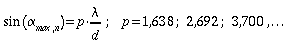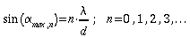 b) Für das Interferenzmuster gelten die folgenden Beziehungen.