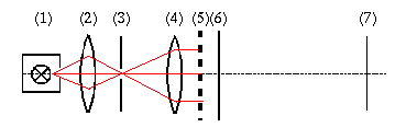 Kondensorlinse f = 10 cm Beleuchtungsspalt Abbildungslinse f = 5 cm Gitter: a = 570/mm Halter für Gitter Schirm |