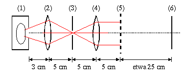 Beleuchtungsspalt (aus zwei Klemmhaltern Netzgerät (6 V) gebildet) Linse 2 f = 15 cm Farbfilter |