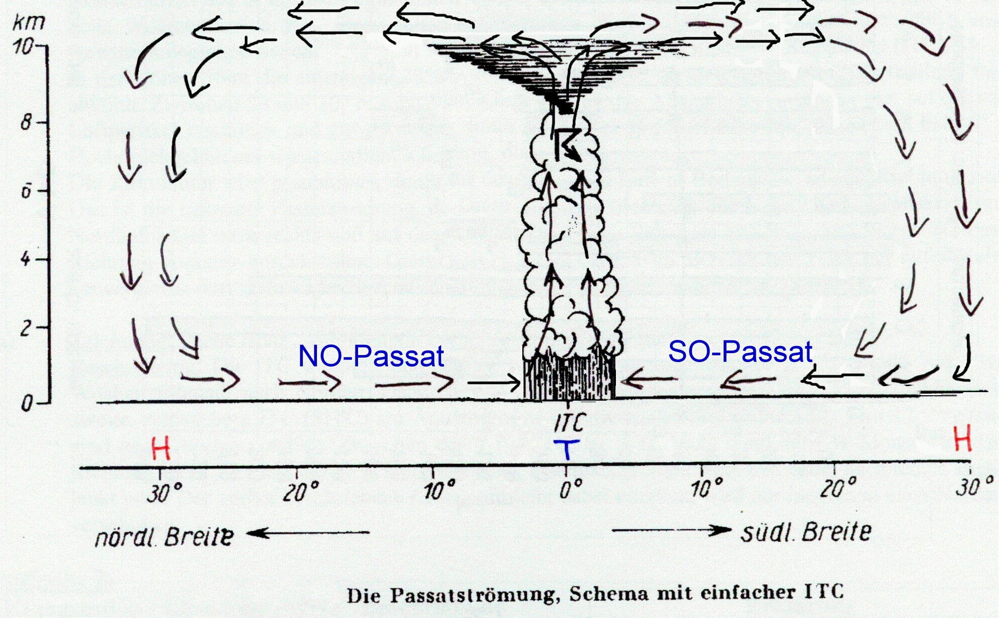 die Witterung in der tropischen Regenzone (ITC = Innertropische Konvergenz(zone);