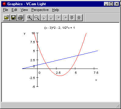 plotfunc2d(f(x), g(x), x = -2..8, y = -5 ..10);