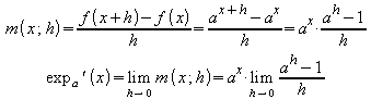 Um die Ableitung der Exponentialfunktion zur Basis a zu bilden, wird zunächst der Differenzenquotient gebildet: