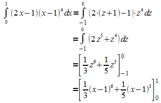 Der letzte Schritt zeigt, dass auf das Umrechnen der Grenzen verzichtet werden kann, wenn die Substitution bei der Auswertung rückgängig gemacht wird.