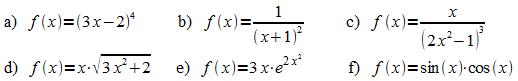Daraus ist wieder abzulesen, dass nach Division von F(x) durch die Ableitung der inneren Funktion eine Stammfunktion von f erhalten wird: