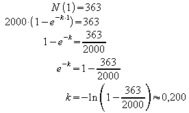Die Wachstumskonstante ergibt sich aus der Anzahl der nach t = 1