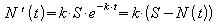 d) Die momentane Wachstumsgeschwindigkeit N'(t) ist proportional zum aktuellen Sättigungsdefizit: