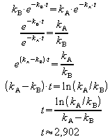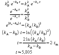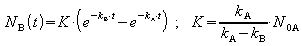 Zunahme von B durch Umwandlung von A in B und gleichzeitiger Zerfall von B:
