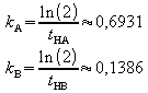Aus den Halbwertszeiten ergeben sich die Zerfallskonstanten: