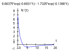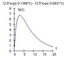 Dabei sind a, b und c positive Konstanten, die vom Wirkstoff, seiner Menge und der Verabreichungsform abhängen. Injiziert man einer Person von 70 kg Körpergewicht eine Dosis von 140 Mikrogramm LSD, so gibt die folgende Funktion die Konzentration in Nanogramm pro Kilogramm Körpergewicht an: