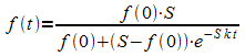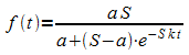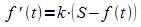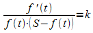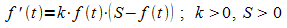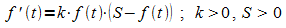 Das begrenzte Wachstum (mit Sättigungsgrenze S) ist dadurch gekennzeichnet, dass die momentane Änderungsrate (Wachstumsgeschwindigkeit) f '(t) proportional zum aktuellen Sättigungsdefizit ist: