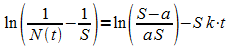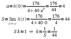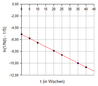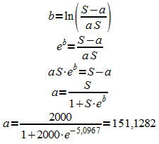 Mit dem (geschätzten) Wert für S können dann die Wachstumskonstante k und der Anfangswert a bestimmt werden: