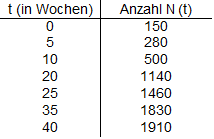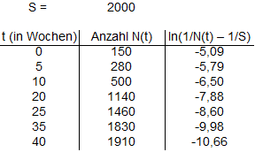 Falls die Sättigungsgrenze S nicht aus der Problemstellung hervorgeht, wird zunächst ein Schätzwert für S gewählt - im Beispiel bietet sich S = 2000 an.
