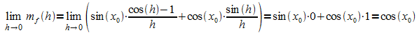 Mit den Grenzwerten (1) und (2) erhält man nun den Grenzwert des Differenzenquotienten der Sinusfunktion an einer Stelle x0: