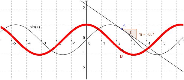 Die folgende Abbildung zeigt den Graphen der Sinusfunktion und stellt die Steigung der Tangenten an den Graphen dar (rot).