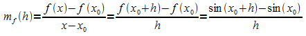 Der Differenzenquotient der Tangensfunktion wird in folgender Form geschrieben: