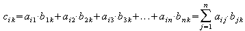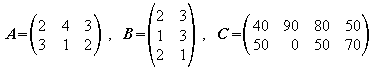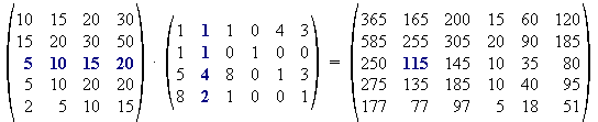 Zu beachten ist also: Man kann zu zwei Matrizen A und B nur dann das Produkt A.B bilden, wenn die Anzahl der Spalten des ersten Faktors A mit der Anzahl der Zeilen des zweiten Faktors B übereinstimmt.