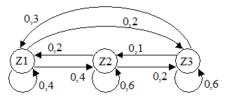 Die Anfangsverteilung auf die drei Zustände Z1, Z2 und Z3 sei