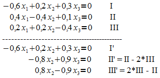Dies führt auf folgendes homogenes lineares Gleichungssystem: