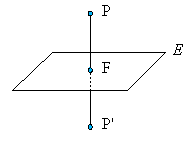 (1) Die Gerade durch P und den Bildpunkt P' ist orthogonal zu E. (2) Der Schnittpunkt F dieser Geraden mit der