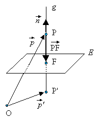 2. Es wird der Schnittpunkt F von g und E ermittelt. 3. Der Ortsvektor des Bildpunktes P' ergibt sich aus