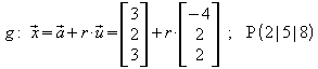 Einsetzen der Koordinaten von g: