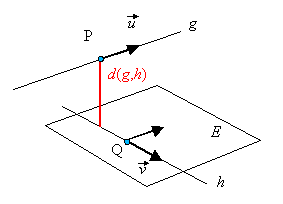 und eine Ebene E echt parallel sind, wird als Abstand von g