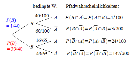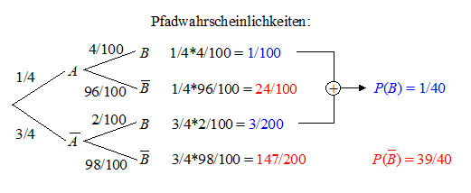 Die benötigten Wahrscheinlichkeiten können mit dem Baumdiagramm bestimmt werden: