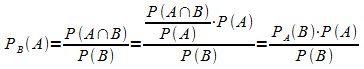 B berechnet sich aus der Wahrscheinlichkeit PA(B) für B unter der