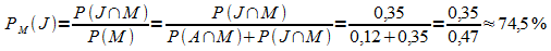 4. Beispiel 2: In einem Wahlkreis sind 30% der Wahlberechtigten über 70 Jahre alt; davon haben 40% die M-Partei gewählt. Unter den jüngeren Wahlberechtigten (bis 70 Jahre) beträgt der Anteil der M-Partei-Wähler 50%. Wieviel Prozent der M-Partei-Wähler sind höchstens 70 Jahre alt?
