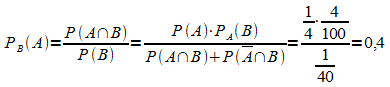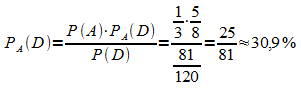 Die gesuchte Wahrscheinlichkeit ergibt sich mit dem Satz von Bayes: