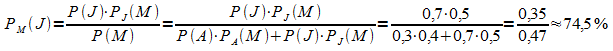 Der Gesamtproduktion wird ein Bauteil zufällig entnommen, das sich als Ausschussteil erweist. Mit welcher Wahrscheinlichkeit stammt das Bauteil von der Maschine M1?