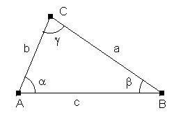 Wenn nichts vorgegeben ist, werden die Eckpunkte oft mit A, B, C bezeichnet. Die den Eckpunkten gegenüberliegenden Seiten werden mit a, b, c benannt. Die Winkel werden nach den Scheitelpunkten mit griechischen Buchstaben bezeichnet: a, b, g. |