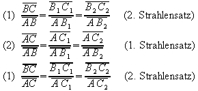 Mit diesen Bezeichnungen lassen sich die an der Strahlensatzfigur abgelesenen Verhältnisse wie folgt formulieren: