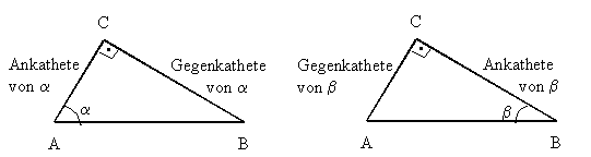 bezeichnet (G: Gegenkathete, A: Ankathete, H: Hypotenuse):