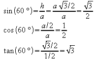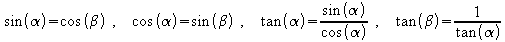 (Gelegentlich wird noch eine vierte Winkelfunktion angegeben: der Kotangens eines Winkels ist definiert als der Kehrwert des Tangens. Bezeichnung: cot(a) = 1 / tan(a))