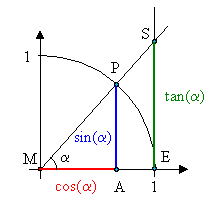 zeichnerisch bestimmen. Dazu wird ein Einheitskreis (Kreis mit Radius 1)