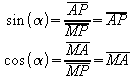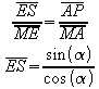 Die durch den Punkt E = (1 ; 0) verlaufende Senkrechte zur x-Achse schneidet die Verlängerung des Radius MP im Punkt S. Der 2. Strahlensatz liefert die Beziehung also: |