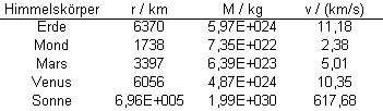 entfernen? Mit welcher Geschwindigkeit müsste der Körper abgeschossen