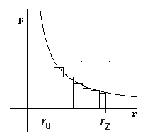 Beim radialen Feld ist die aufzuwendende Kraft beim Heben eines Körpers von einem Anfangspunkt P0 zu einem Zielpunkt PZ nicht mehr konstant. Zunächst soll der Körper längs einer Feldlinie gehoben werden.Die Grundidee zur Berechnung der Arbeit als Fläche unterhalb des Weg-Kraft-Graphen ist dann folgende.