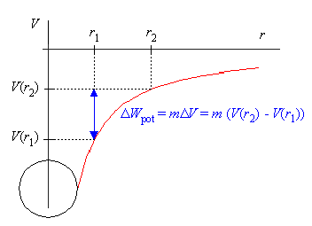 Damit wird die potentielle Energie im Gravitationsfeld negativ: