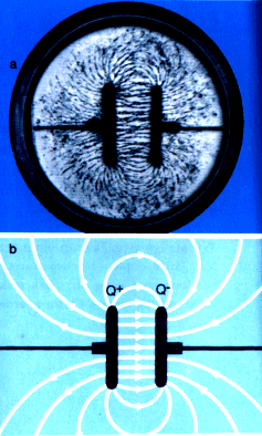 2. Elektrische Felder werden durch Feldlinien dargestellt. Dies sind gedachte Linien, deren Tangentialrichtung in jedem Punkt des Feldes die Richtung der dort wirkenden Kraft auf eine positive Probeladung angibt.