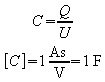 Die Einheit ist das Farad F (nach Michael Faraday). In der Praxis treten jedoch meist nur deutlich kleinere Kapazitäten auf. Bei technischen Kondensatoren finden sich die Größenordnungen