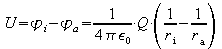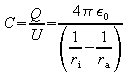 3. Ein Kugelkondensator besteht aus zwei konzentrisch angeordneten Kugeln mit Innenradius ri und Außenradius ra. Wenn die innere Kugel gegenüber der äußeren Kugel positiv aufgeladen wird, dann gilt für die Spannung