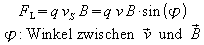 Die Lorentz-Kraft entsteht nur durch die Bewegung senkrecht zum Magnetfeld. Also gilt allgemeiner: