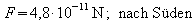 Geben Sie Betrag und Richtung der wirkenden Kraft an.