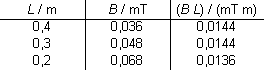 Bei einer Spule mit Windungszahl n = 30 und veränderlicher Länge l wurden zwei Messungen durchgeführt: