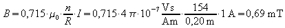 Dabei ist n die Windungszahl jeder der beiden Spulen, R der Spulenradius und I die Stromstärke in den beiden hintereinander geschalteten Spulen. Die Spulen sind natürlich so zu verschalten, dass sie gleichsinnig vom Strom durchflossen werden.
